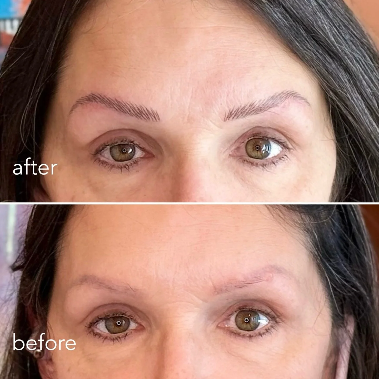 View fullsize My beautiful client came back about 3 years after having her brows done with me originally. As you can see in the before photos, there is no leftover or unwanted pigment - clean slate!